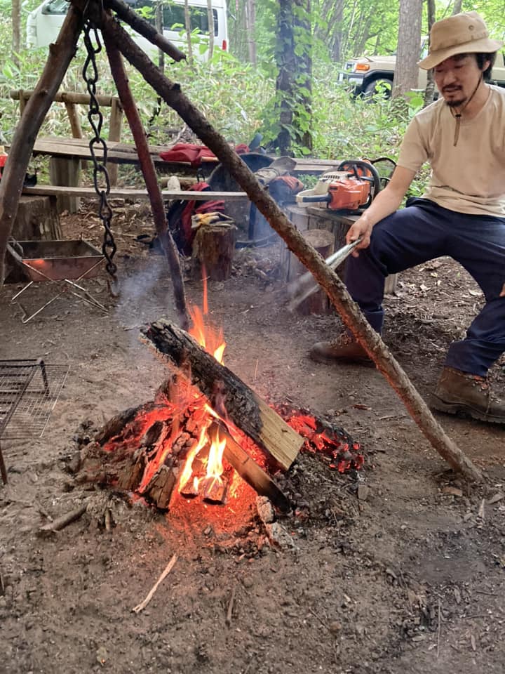 作業の後は焚火をしながら日頃感じているストレスを二酸化炭酸と一緒に森に吸ってもらう時間